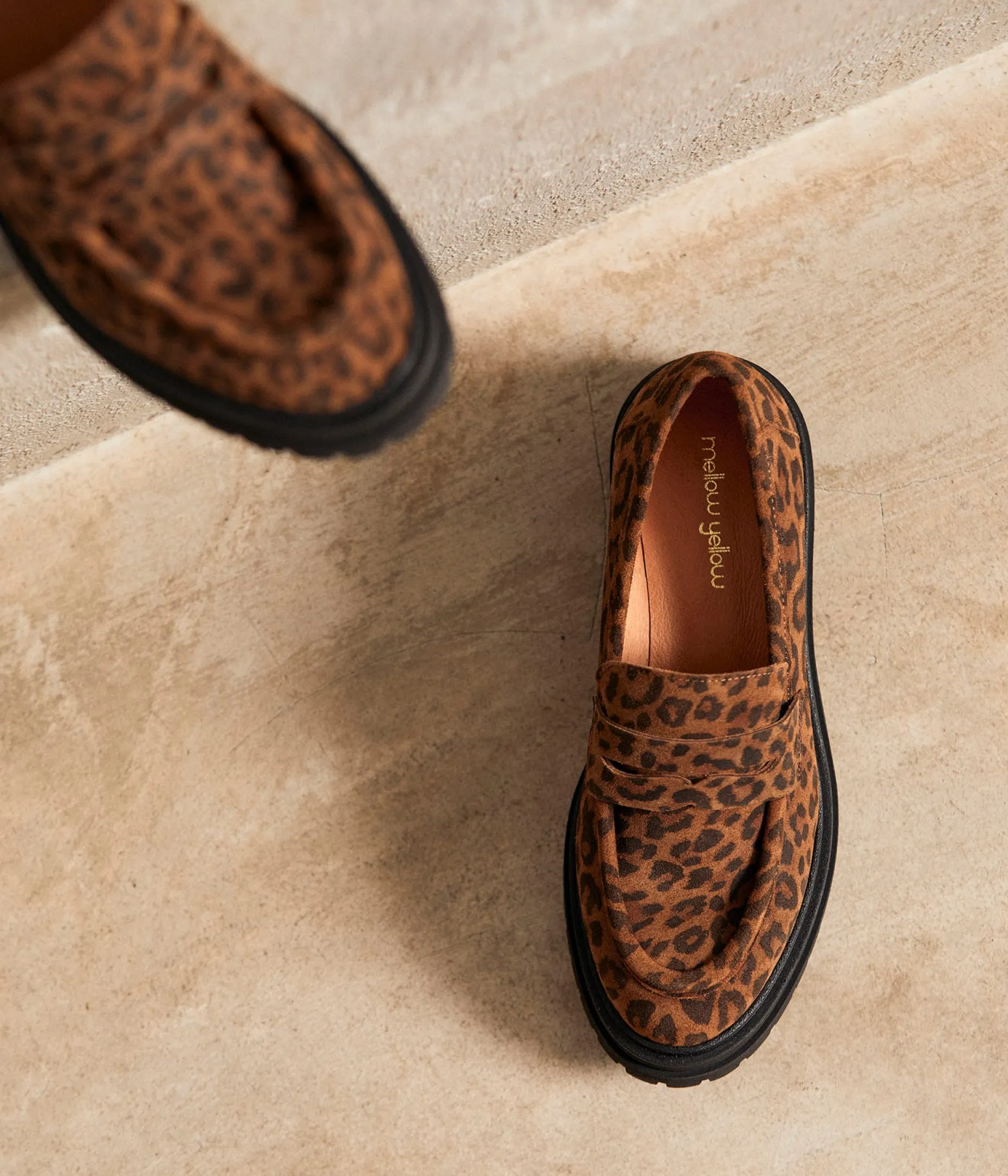 On peut dire revisiter, réinventer, remasteriser. On annonce semelles épaisses et crantées, motif léopard sur cuir velours. Tout ça pour vous prouver l’ultra-fashionalibité des mocassins Angelika, sans passer par A+B.