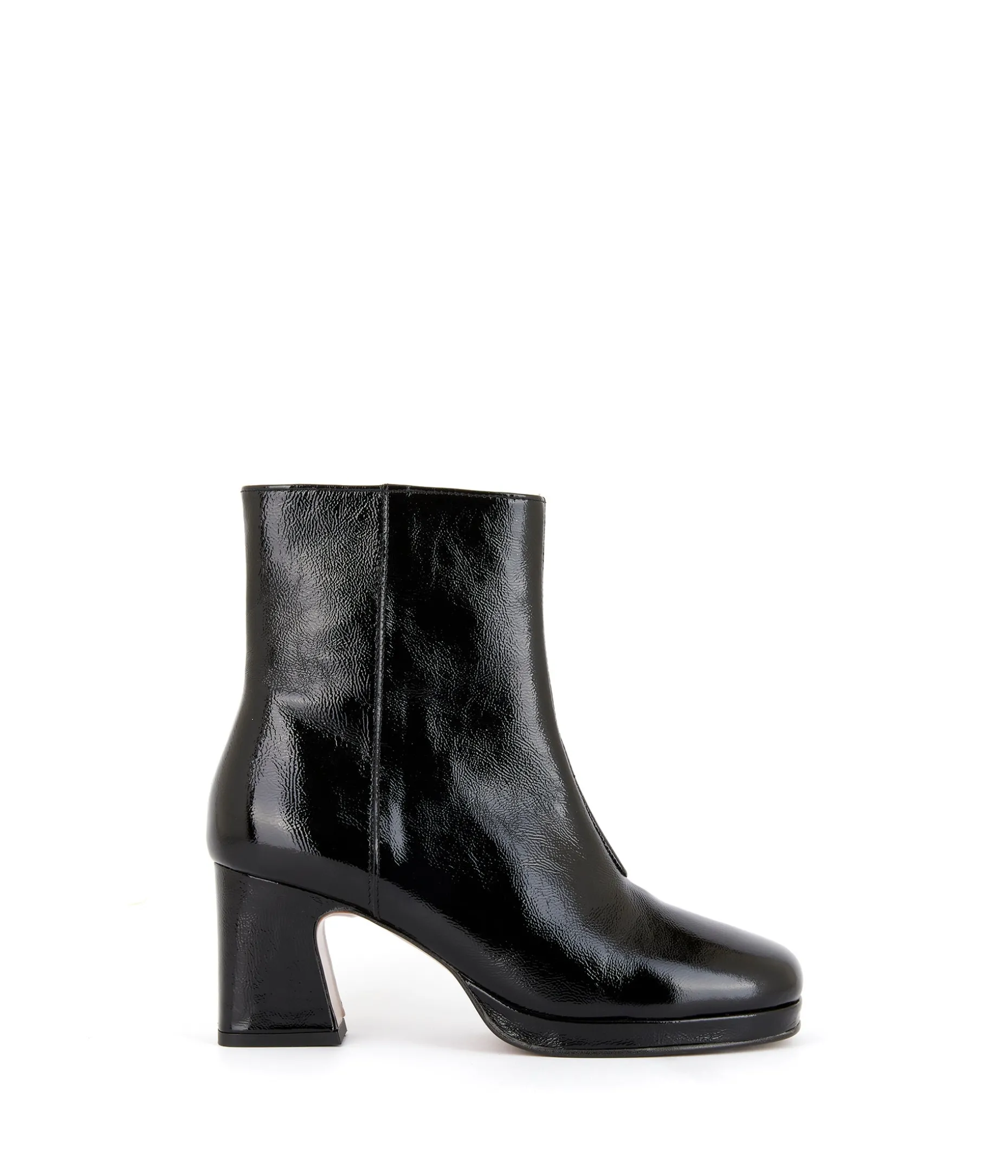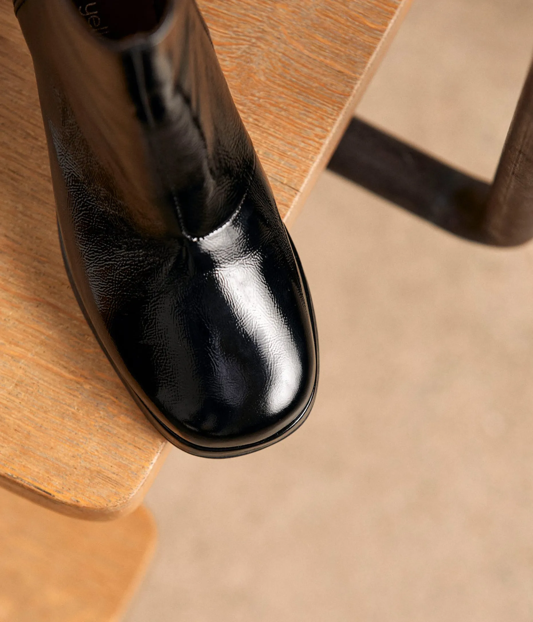 Il fait gris = on n’a pas l’énergie pour travailler. Il fait beau = on a de l’énergie… mais pas pour travailler = l’être humain n’est probablement pas fait pour travailler. Une fois ce constat fait, prenez de la hauteur sur la réalité, avec les boots Bethanie. Cuir noir et finition vernie, talon de 7 cm et plateforme de 1,3, elles sauront vous guider dans la bonne direction.