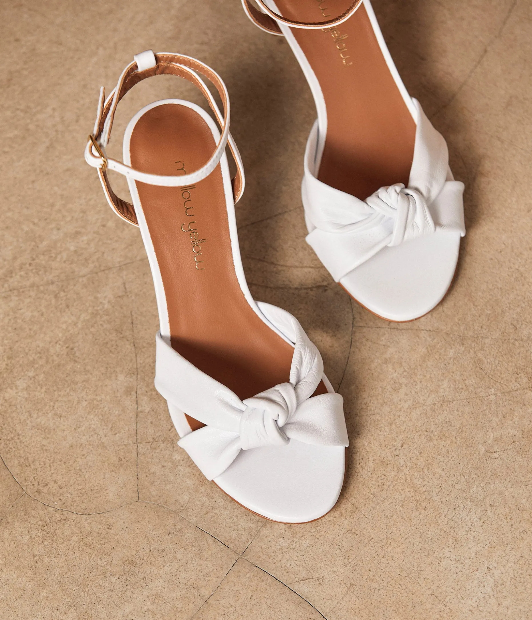 De brut en blanc. Un blanc pur, qui souffle sur le cuir, pour lui donner un vrai coup d’éclat. Un cuir lisse qui se noue, pour défendre une certaine souplesse. Les mules Ivana célèbrent le printemps, tout simplement !