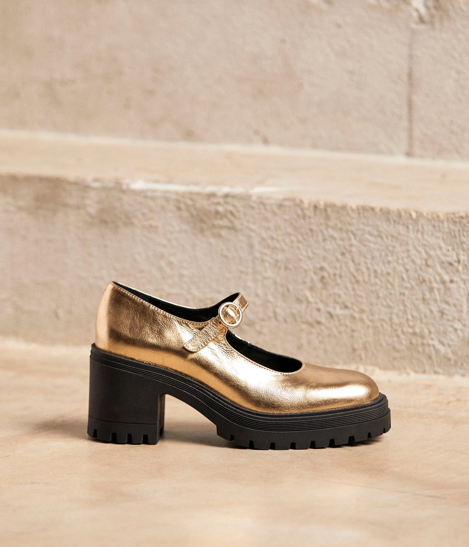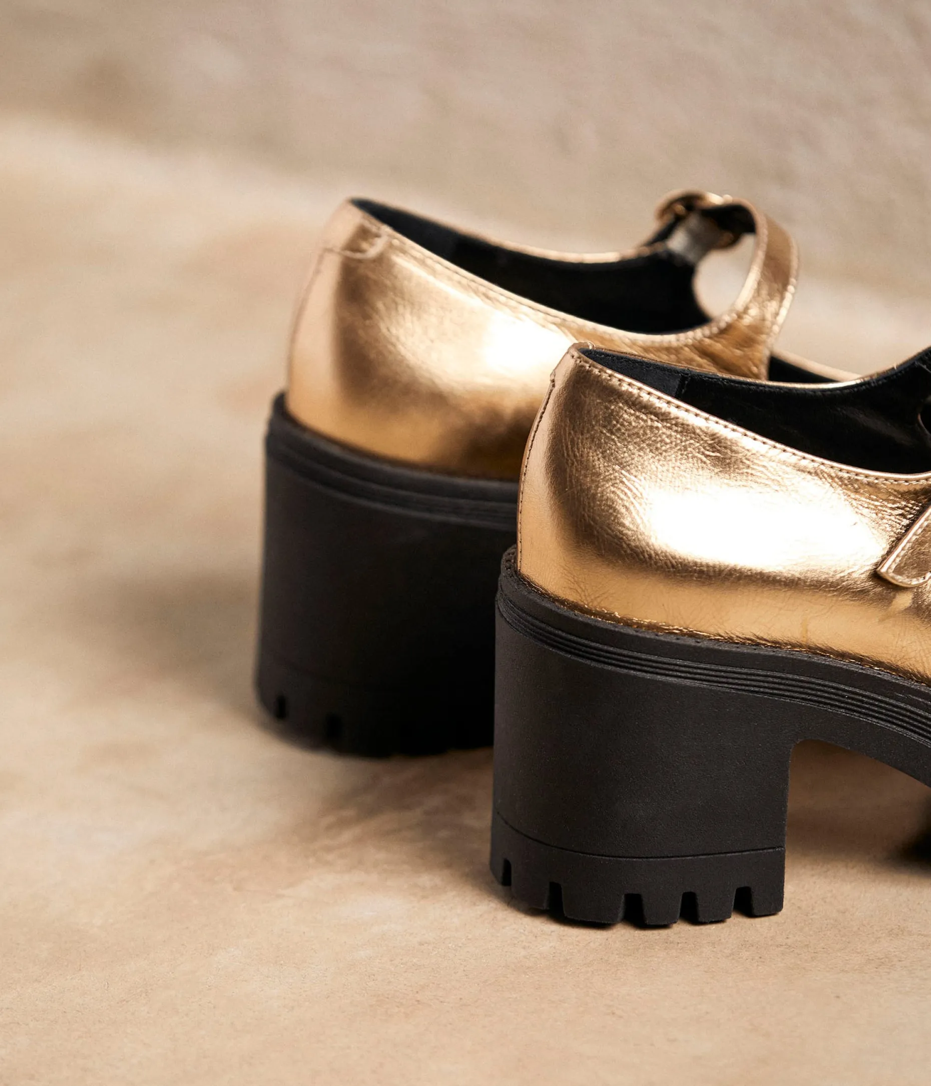 Voilà un rôle en or pour les babies Anae ! Le rôle d’une tête d’affiche, grâce à la semelle crantée. Le rôle qui met tout de suite en lumière, grâce au cuir doré. Le rôle d’une vie, à vos pieds.