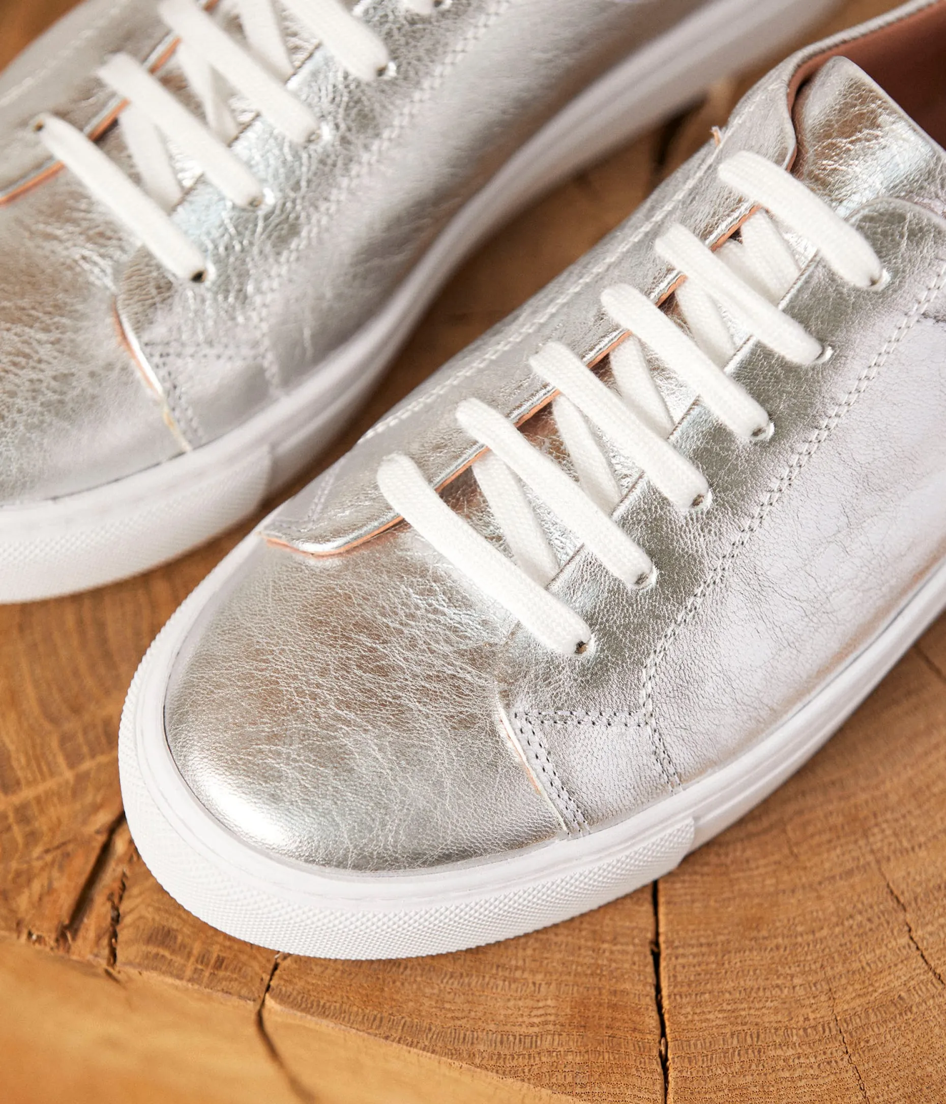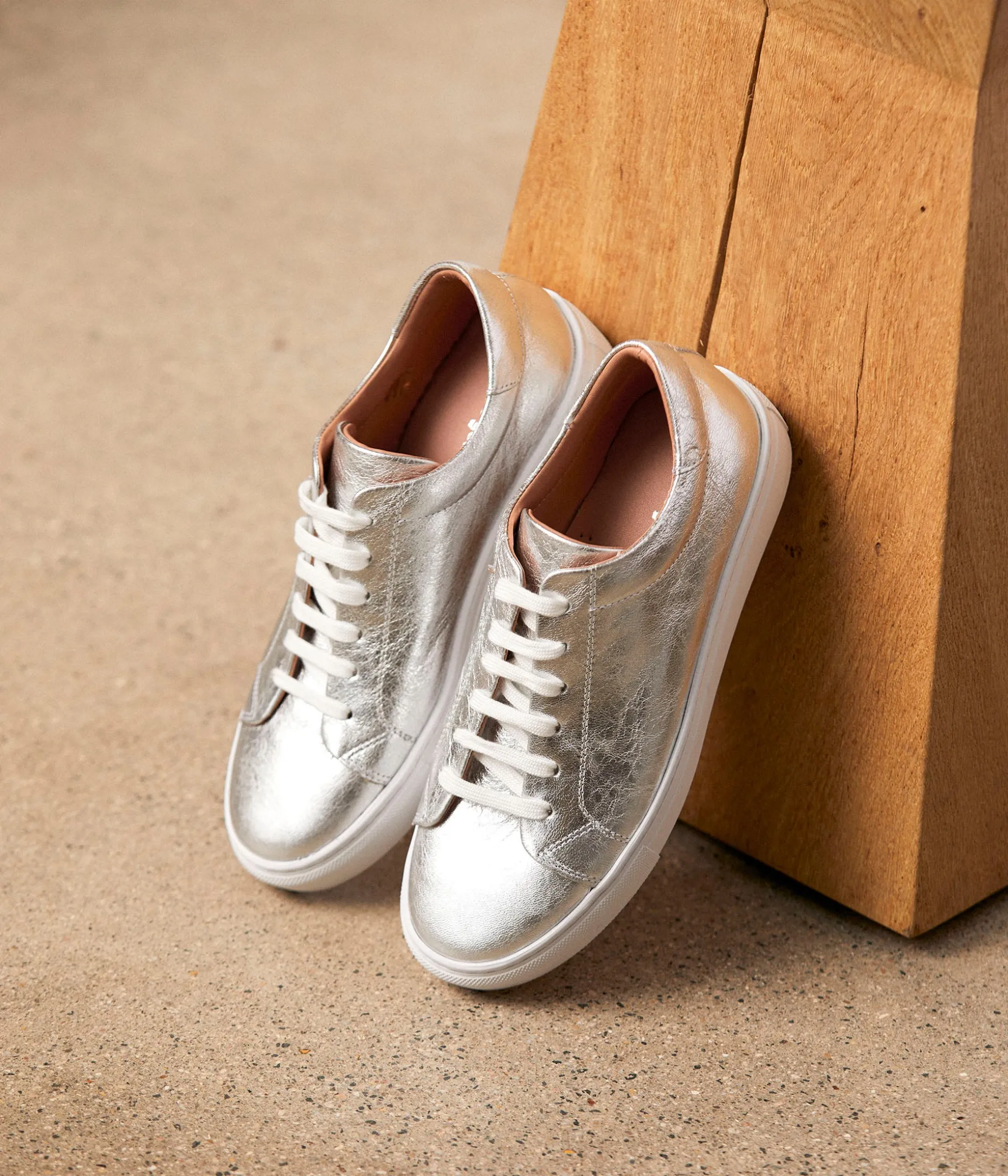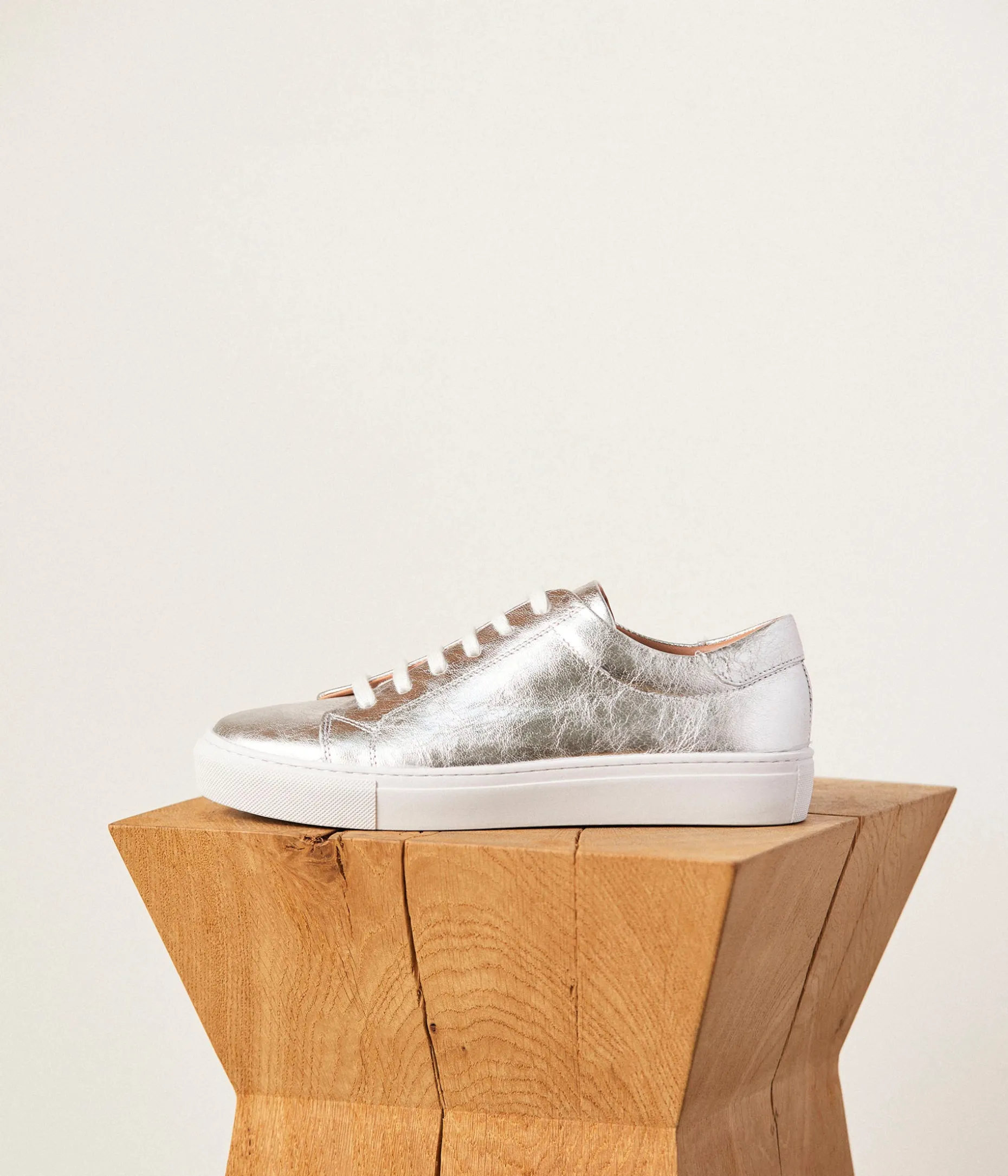 Elles mettent des paillettes dans nos vies ces sneakers Suzette en cuir métallisé argent. Elles funkisent la plus fadasse de nos tenues, illuminent une journée un peu terne, et sont repérables de loin si vous ne voulez pas qu’on vous confonde.