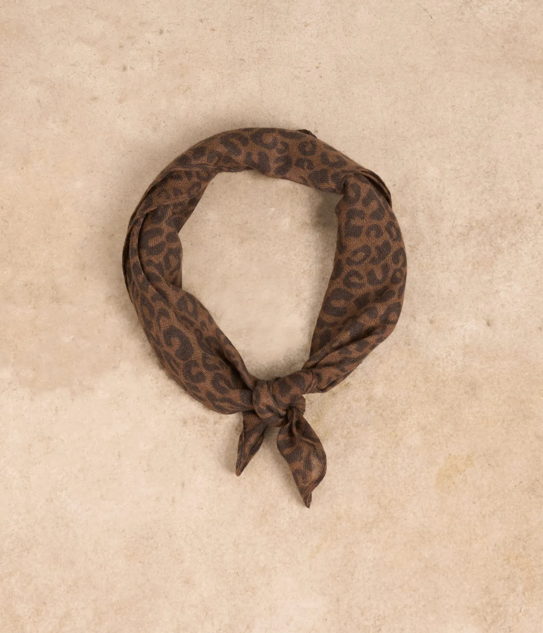 Jouer les bêtes de mode : check ! Prenez votre rôle à coeur avec Nina. Un foulard 100% laine à imprimé effet léopard, à nouer dans les cheveux, autour du cou ou sur l’anse d’un sac.
