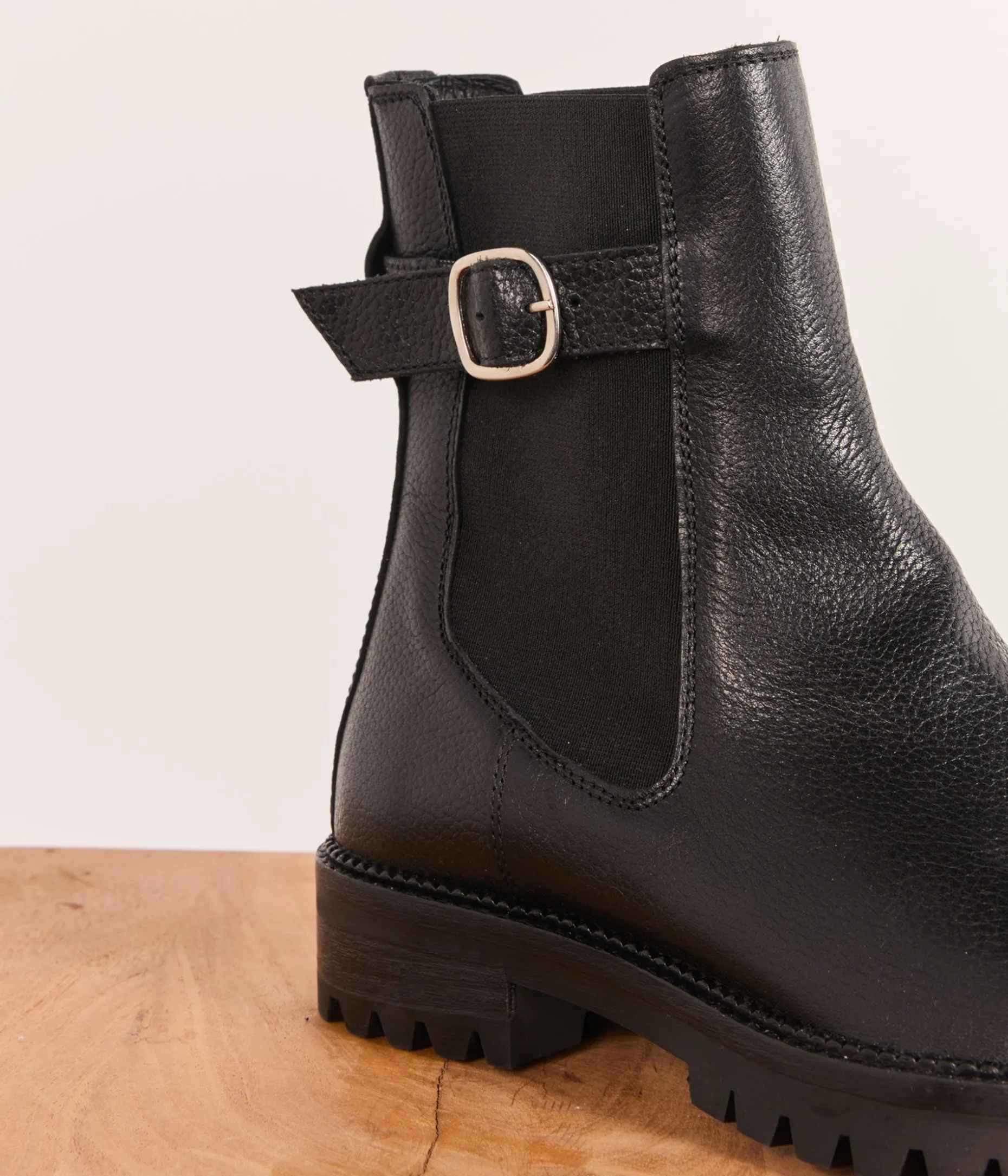 Vous êtes comment, vous, en ce moment, par rapport à votre zone de confort ? En sortir ou pas, c’est toute la question. Le bon compromis, c’est Falco, des Chelsea boots montées sur semelles crantées, avec boucle décorative sur le côté.