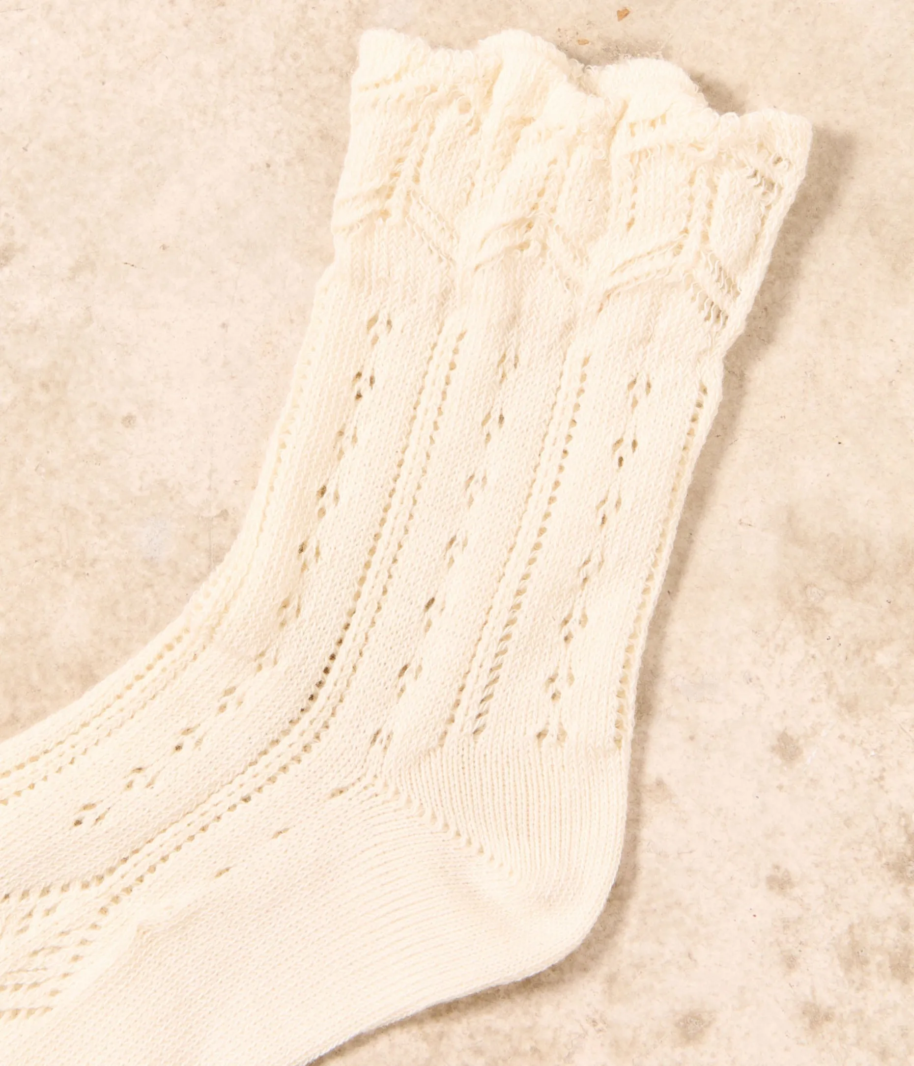 L’idée charmante de la saison, c’est de privilégier les chaussettes, avec tout (on entend mocassins, babies et ballerines.) Le must ? Lisette, un modèle de couleur beige et inspiration dentelle. Belles, belles, belles !