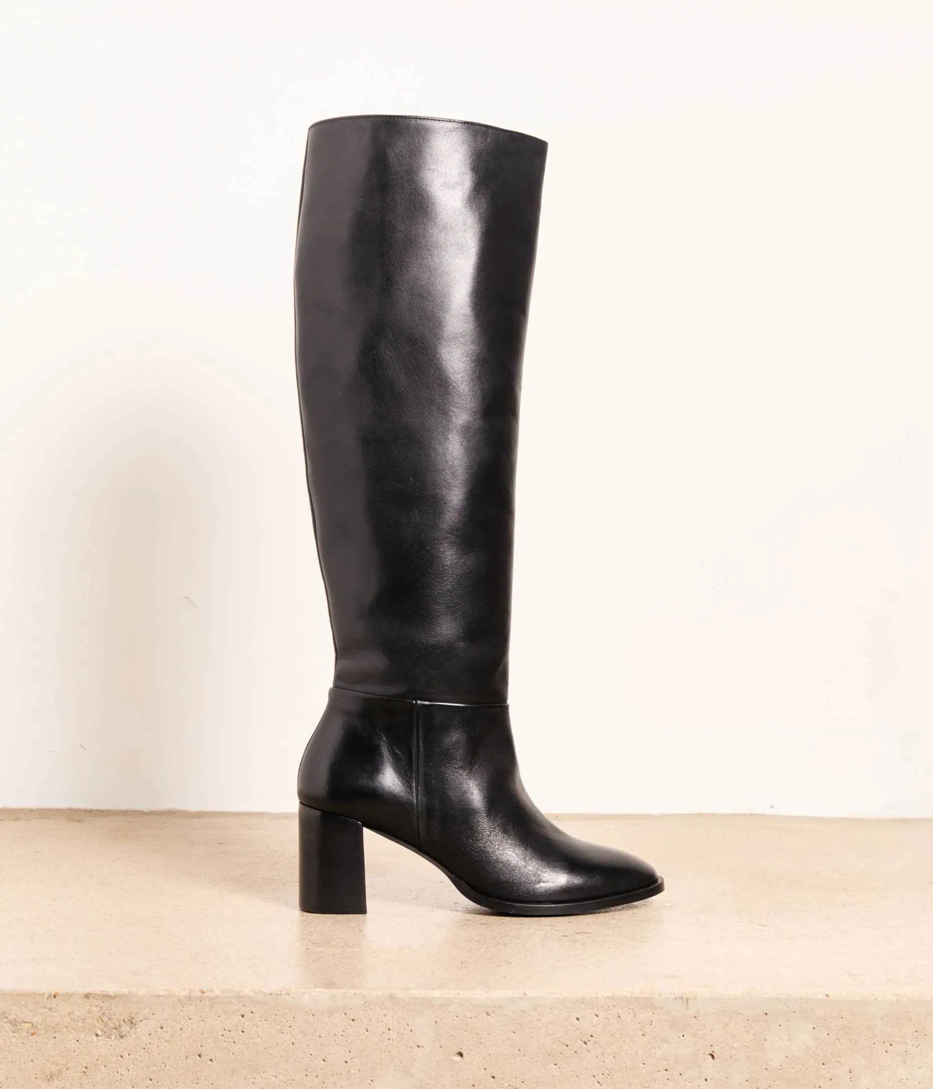 Vous le saviez, vous, que la taille de votre pied était égale à celle de votre avant-bras ? (On vous voit, en train de vérifier !) Elle en a des choses à (nous) apprendre cette chère Vivian. Commencez par copier ses célèbres cuissardes Edwina e cuir noir, signature d’un style glam’ hot, le jour comme le soir.