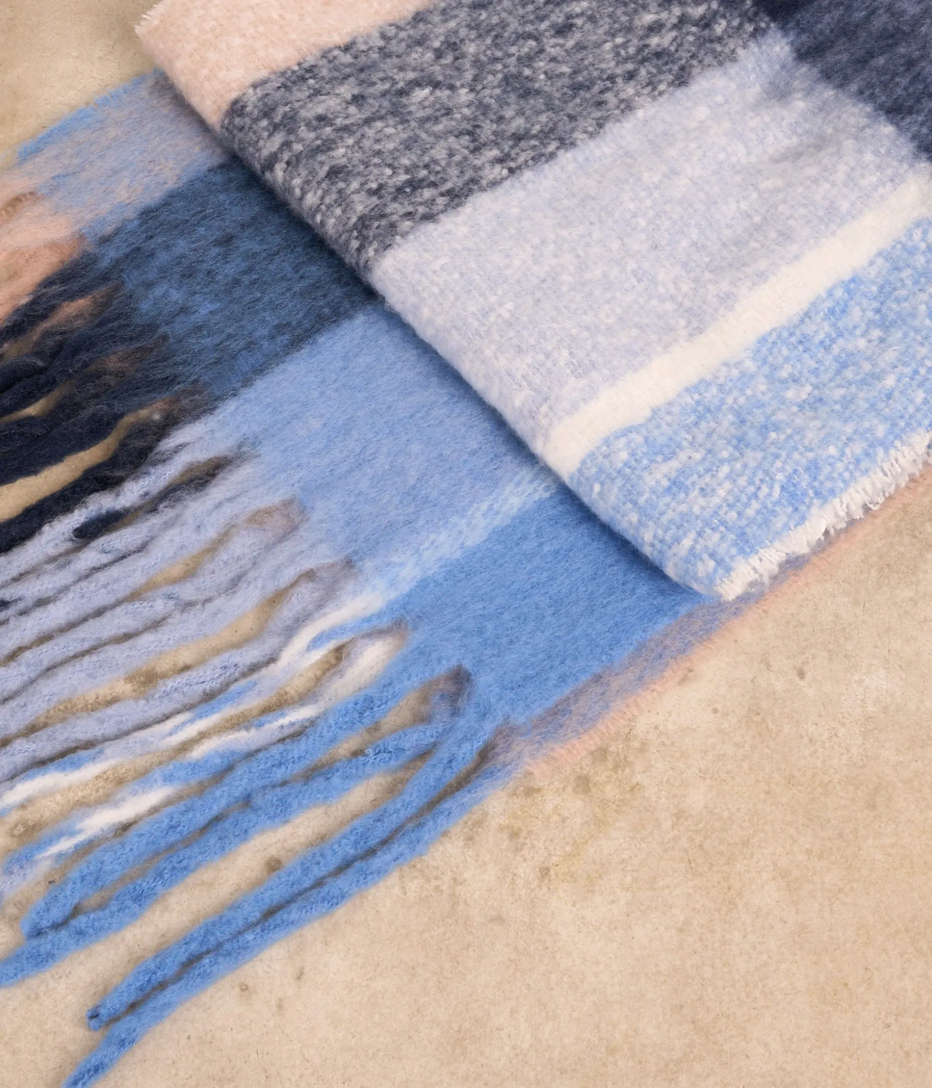 On déclare officiellement ouverte… la saison des écharpes. Et vu la beauté de Livia, motif carreaux bleus sur matière ultra moelleuse, on sait déjà qu’on va faire des heureuses !