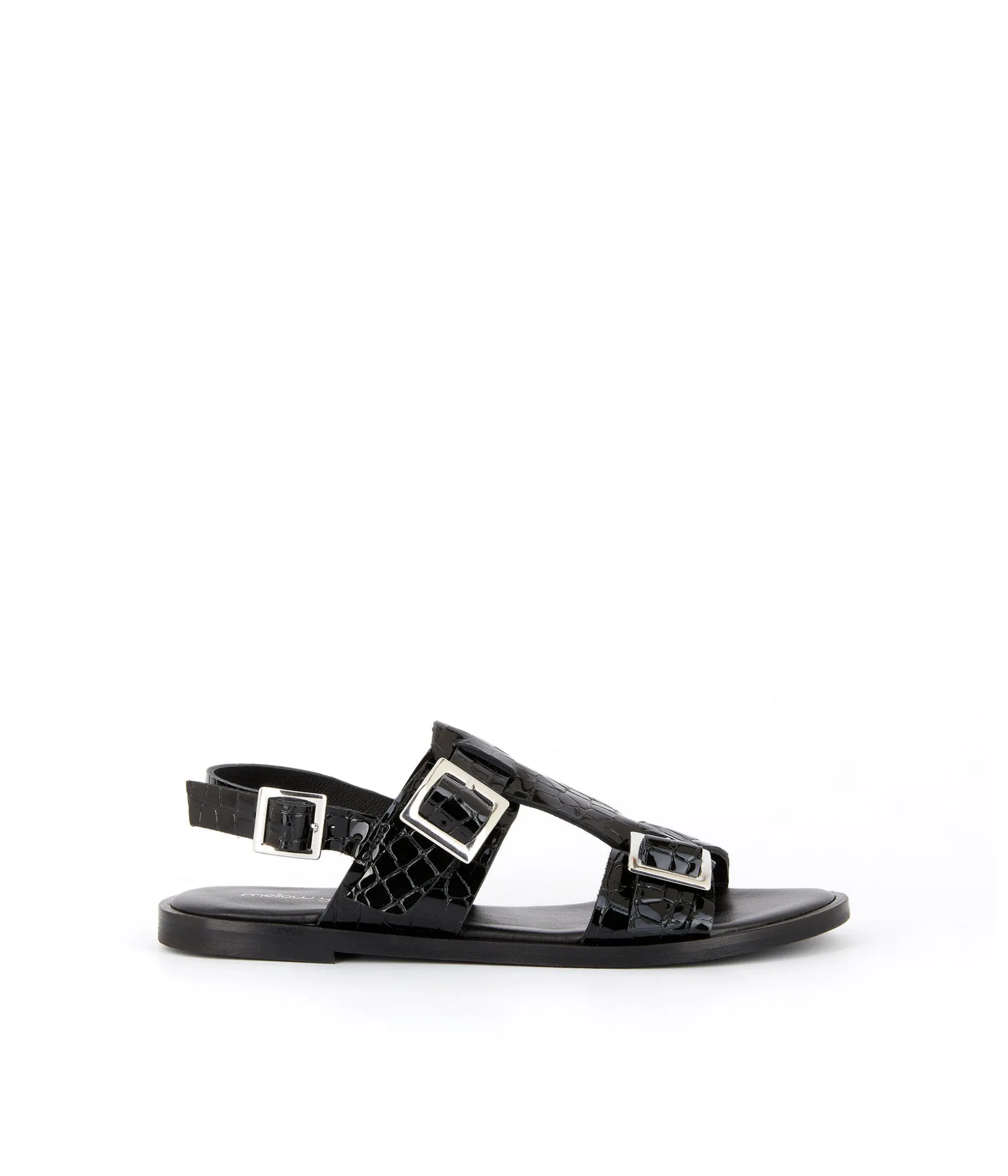 Si, comme nous et comme Joan Jett, vous fredonnez I Love Rock ‘n’ Roll dès le réveil, les sandales Nikki sont faites pour vous ! En cuir, noires, vernies, avec embossage effet croco, elles réveillent votre style et promettent un style fou.