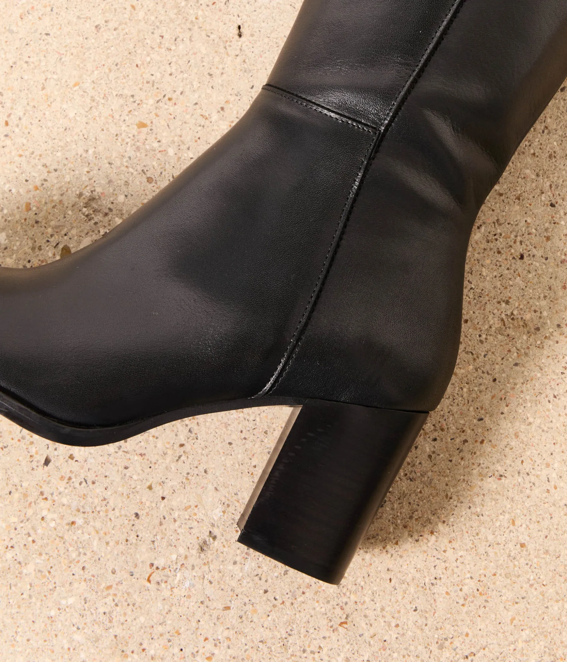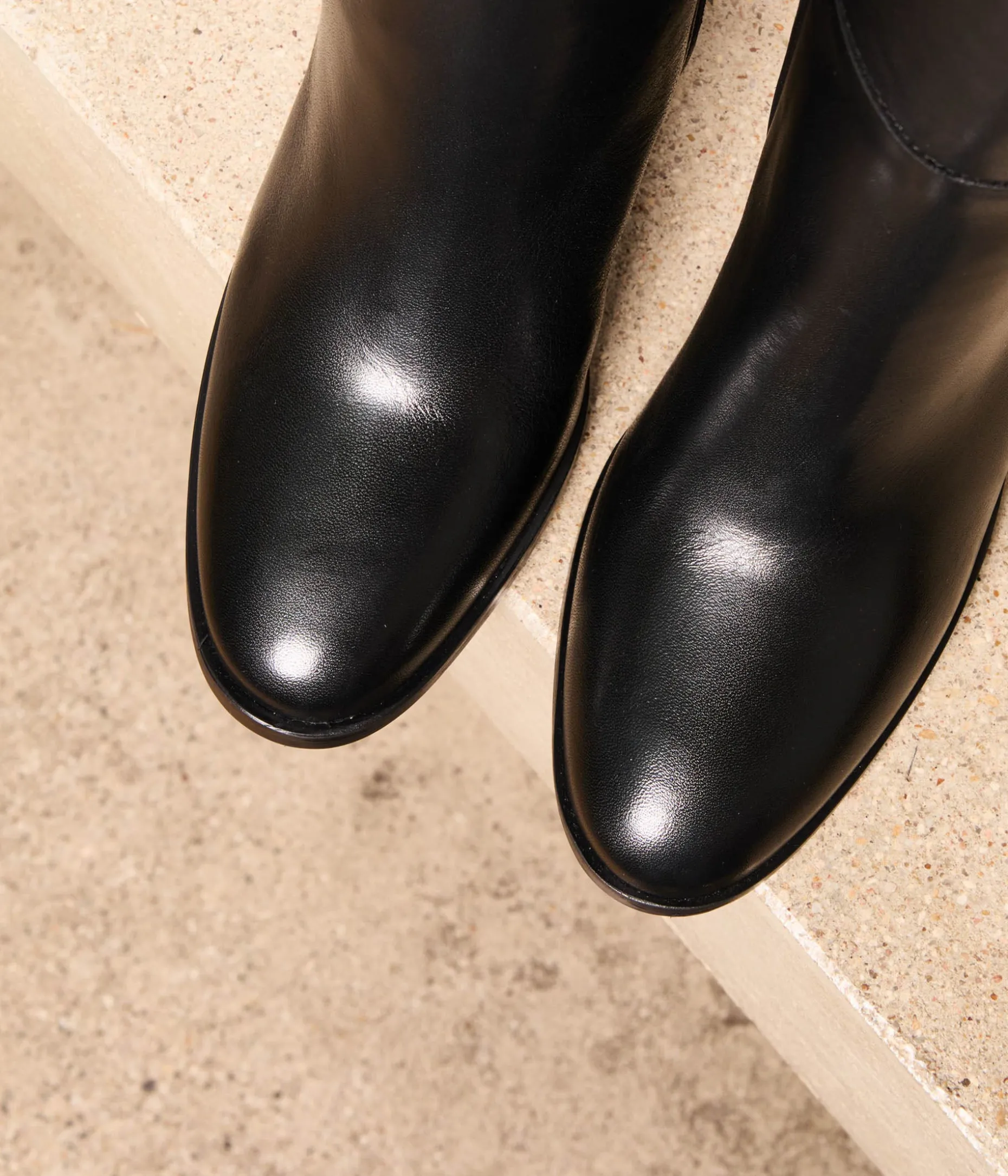 La perfection, c’est quoi ? C’est l’état de quelqu’un ou de quelque chose qui est parfait en son genre. Et en matière de style, on vous annonce que votre quête s’arrête ici. Devant les bottes femme Juliette. Cuir lisse, coloris noir, talon de 7,5 cm, vous ne trouverez pas mieux (ceci est une promesse).