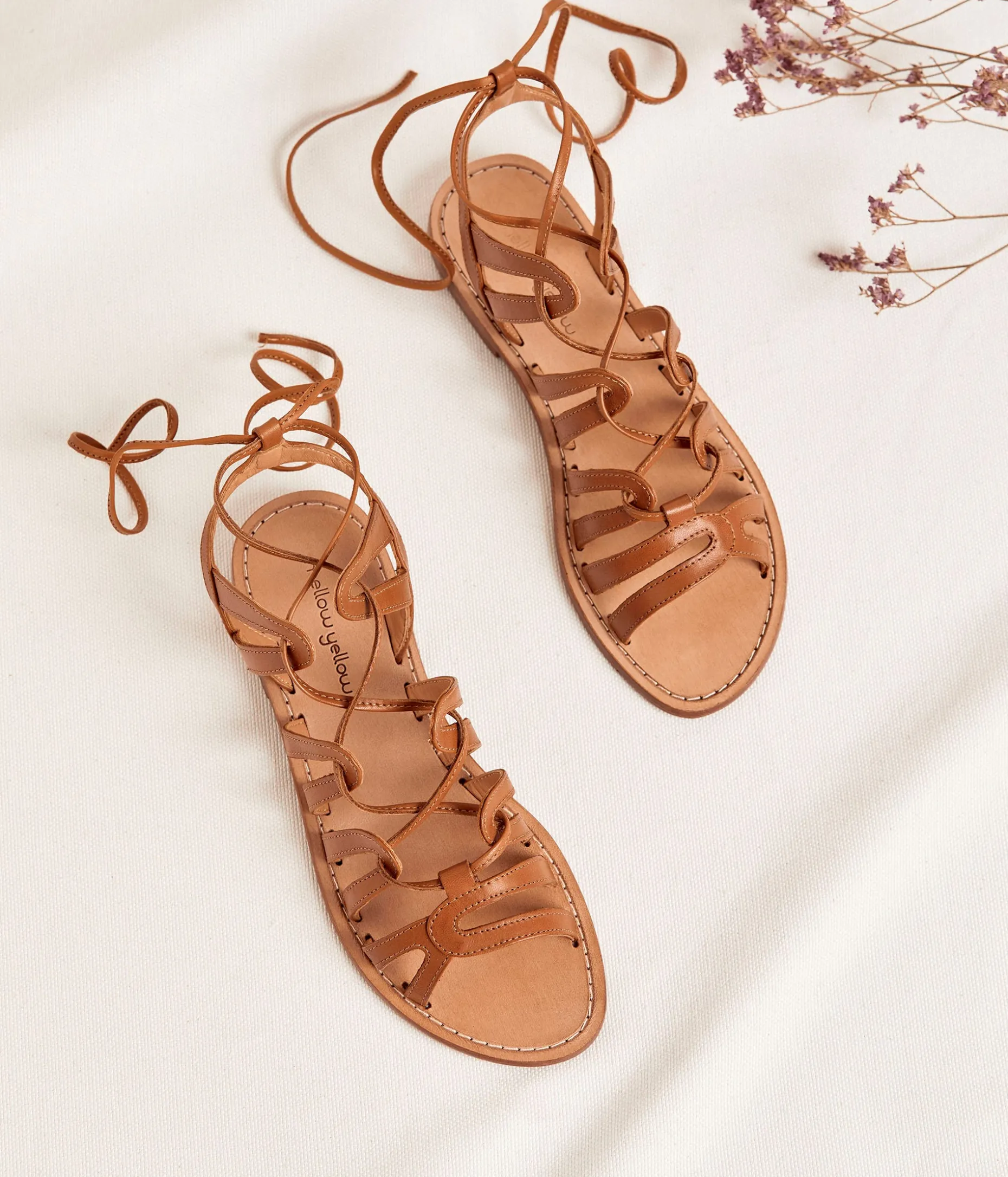 Hot Mellow Yellow Sandales lacées Leigh COGNAC