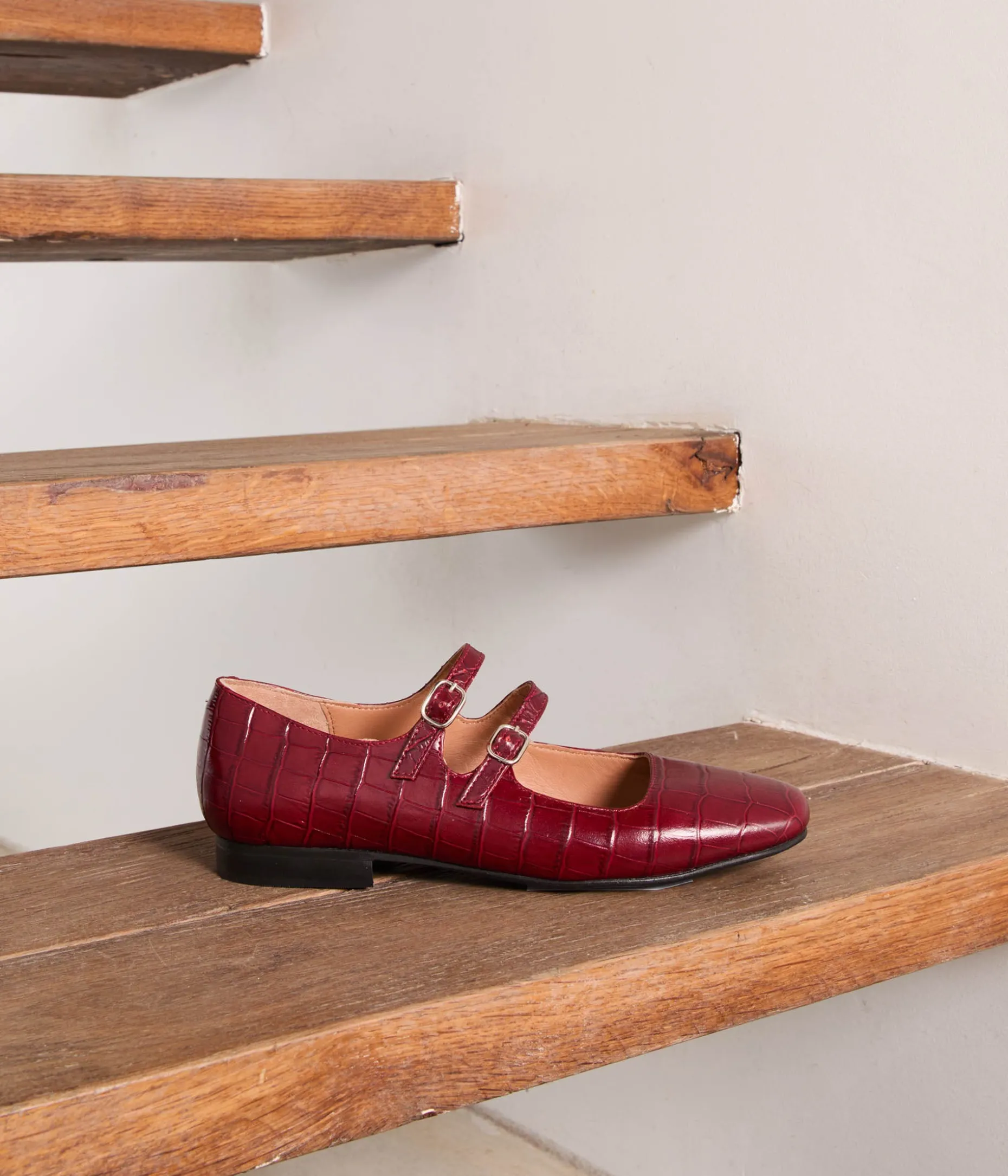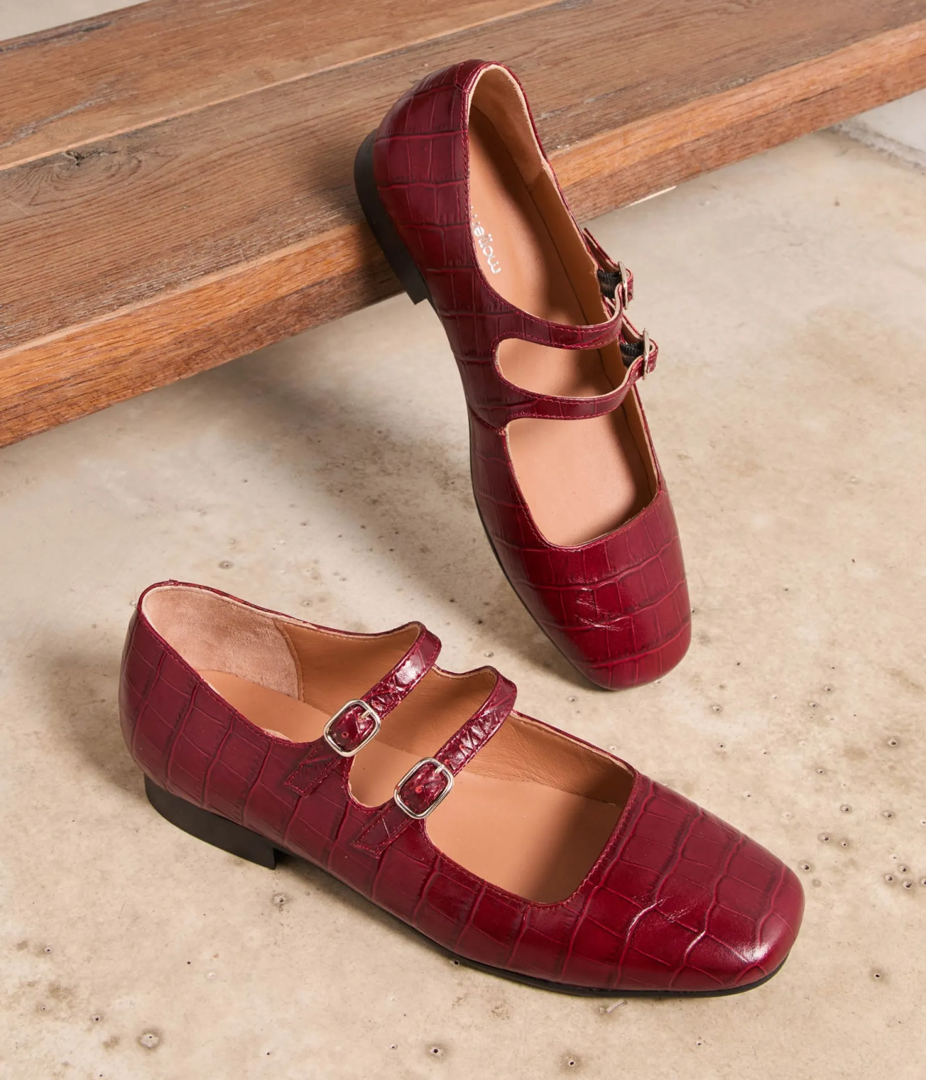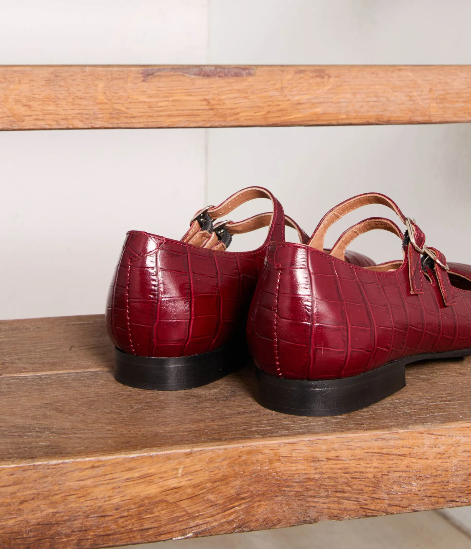 Dans le domaine de la mode, peu de matières captivent et envoûtent aussi habilement que l’allure séduisante du crocodile. Effet réussi sur les babies Aurella, en cuir bordeaux. A réserver aux ladies en toutes saisons. Leur mission ? Être canon (comme vous, quoi !).