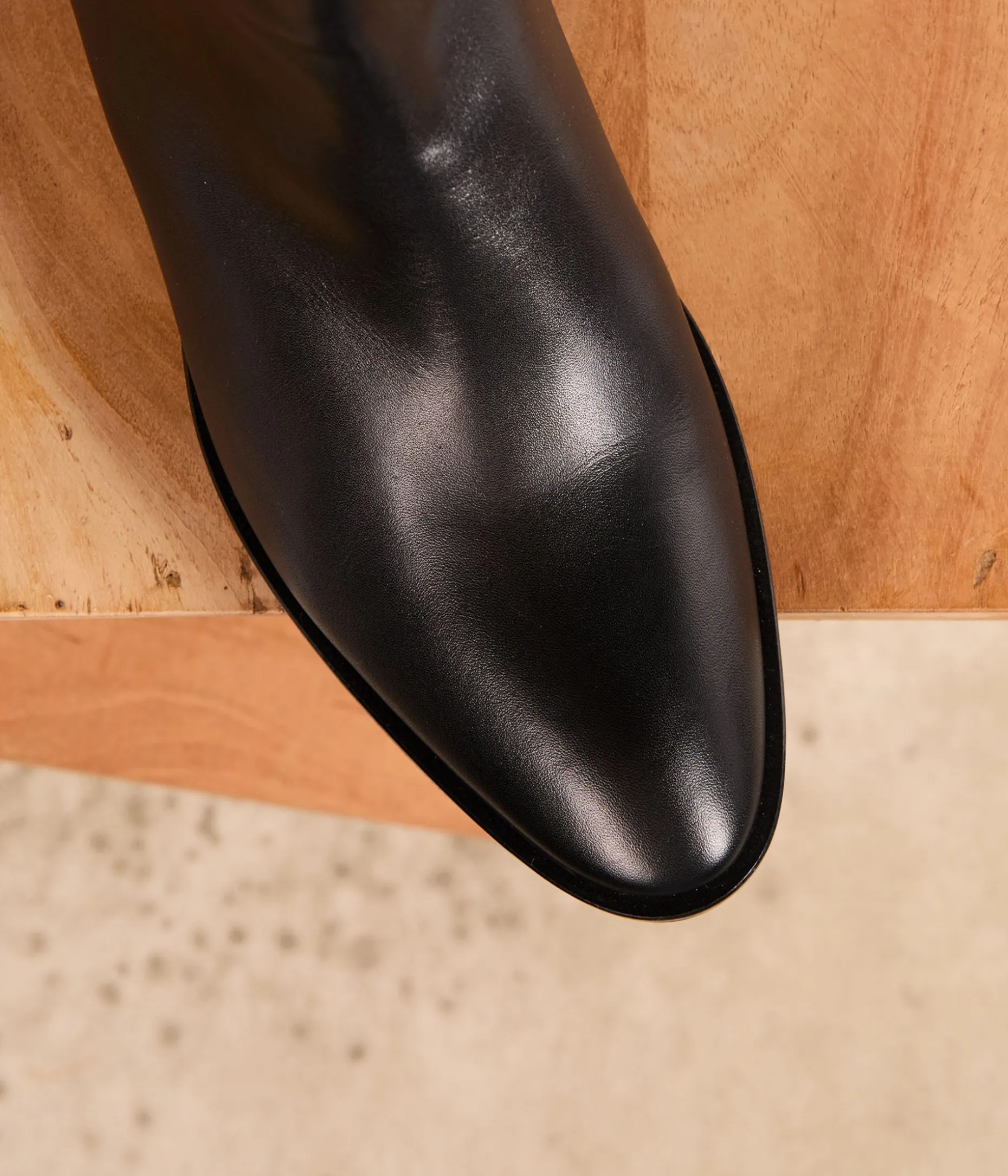 Pour garder et cultiver son énergie tout au long de la saison, il faut des chaussures de caractère, des souliers qui tiennent la route, des boots qui résistent à tout. Essayez Hailey, un modèle en cuir noir, monté sur un talon légèrement biseauté.