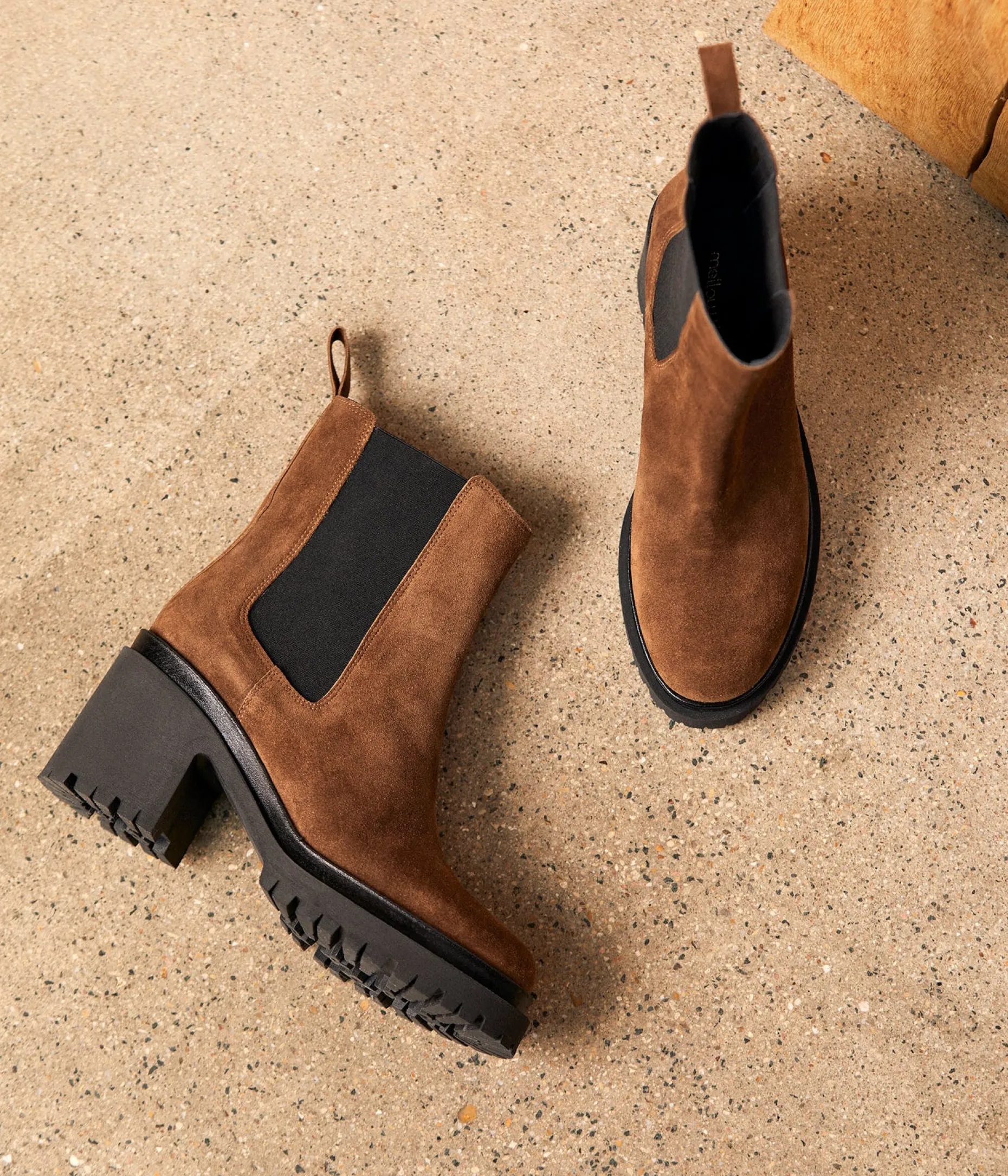 Avec leur semelle et leur talon crantés ultra confortables et leur cuir velours, ces Chelsea boots de tous les jours ont un style infatigable, toujours dans l’air du temps. Leur nom ? Candice. Parfaites de bout en boots.