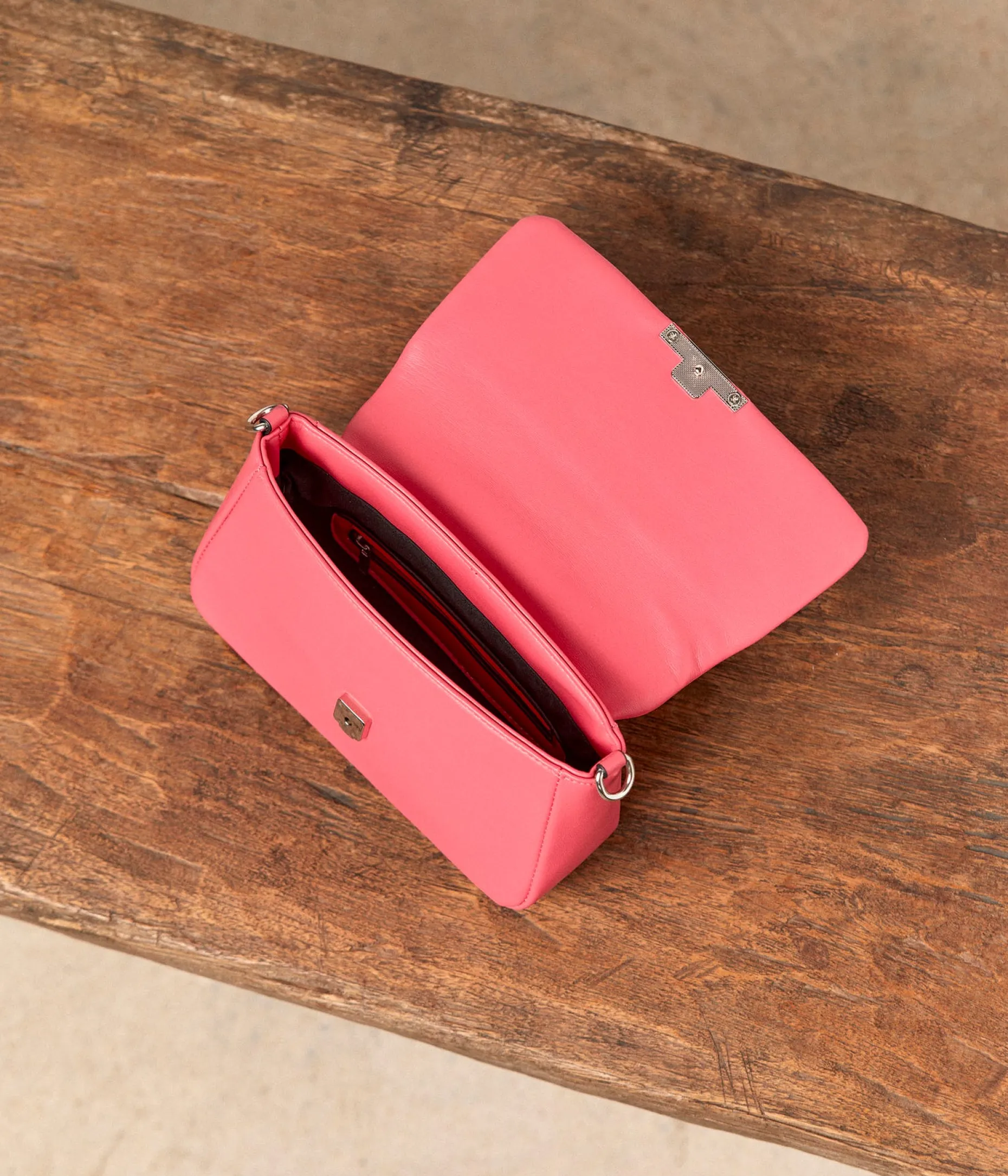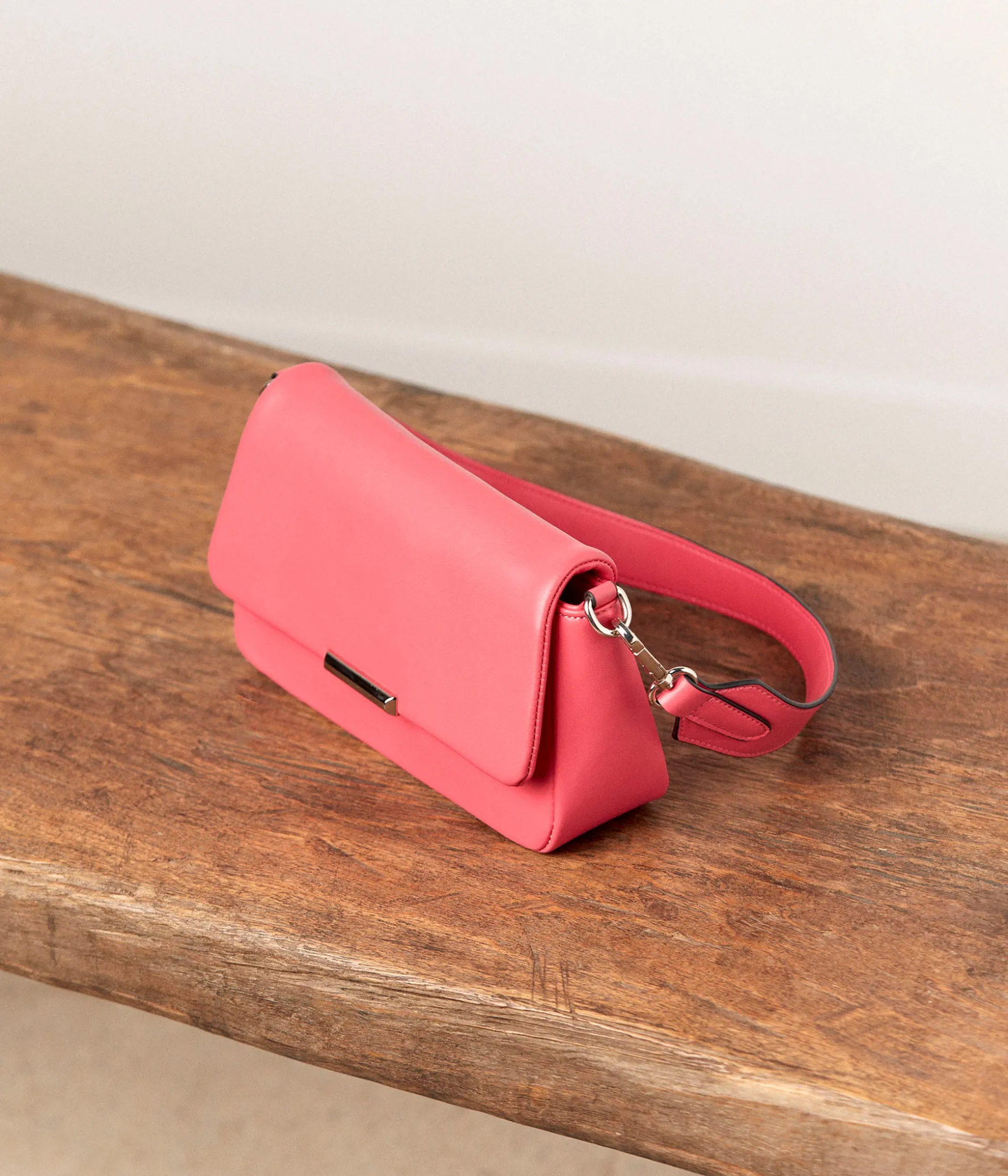 Epoustouflant par son coloris rose shocking. Craquant par sa forme. Jeannine appartient à cette nouvelle génération de sac pour femme, qui se plie à tous nos désirs. A essayer version street chic sur un look monochrome, avec casquette et dad shoes.