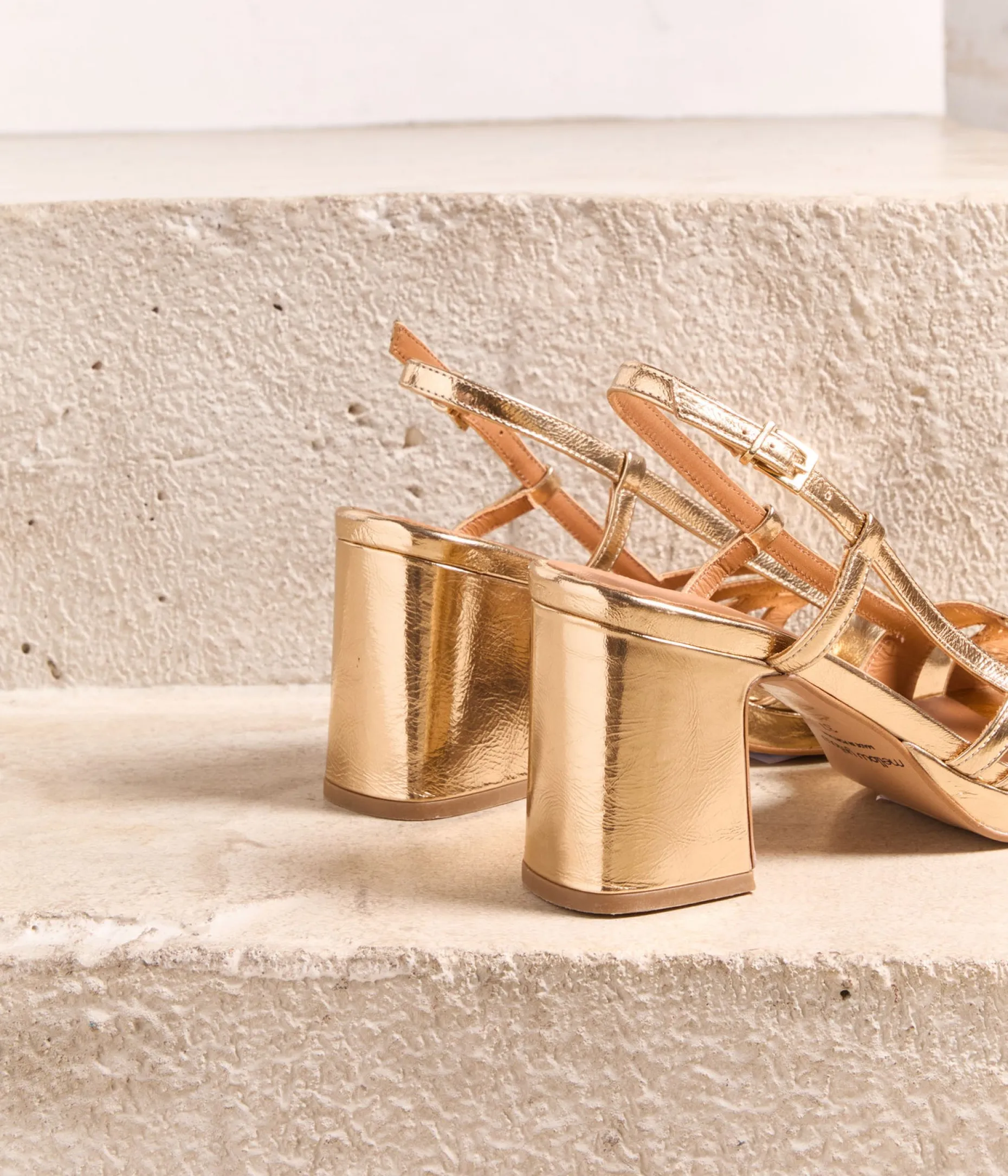 Visez la lune, ça n’vous fait pas peur ? Nous non plus. Des sacrifices, s’il le faut, vous en ferez. Vous en avez déjà fait (on le sait) mais pas sur les sandales June. Tout en cuir doré, elles sont vos meilleures alliées de l’été/des soirées improvisées/des réu au sommet. (Et toujours le point levé).