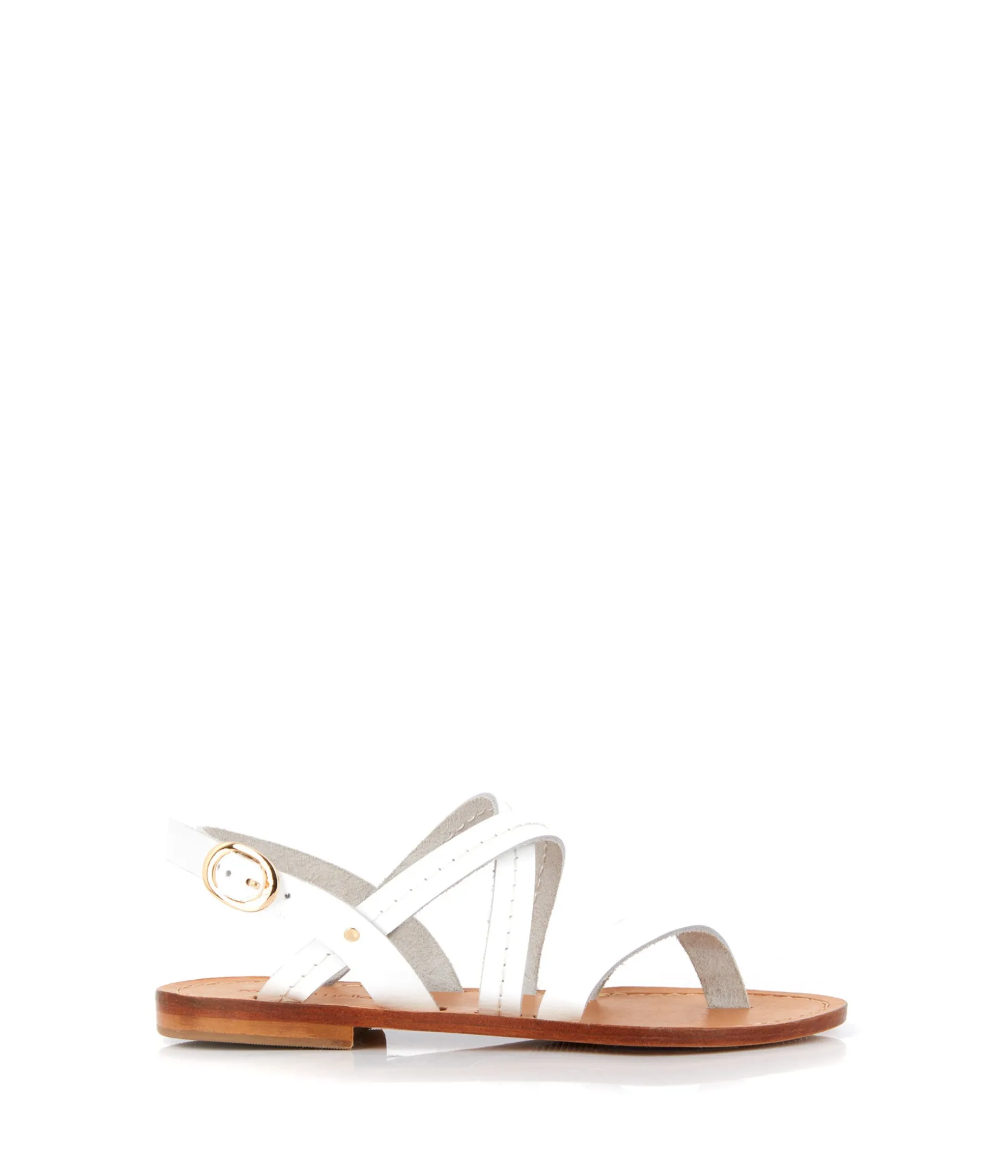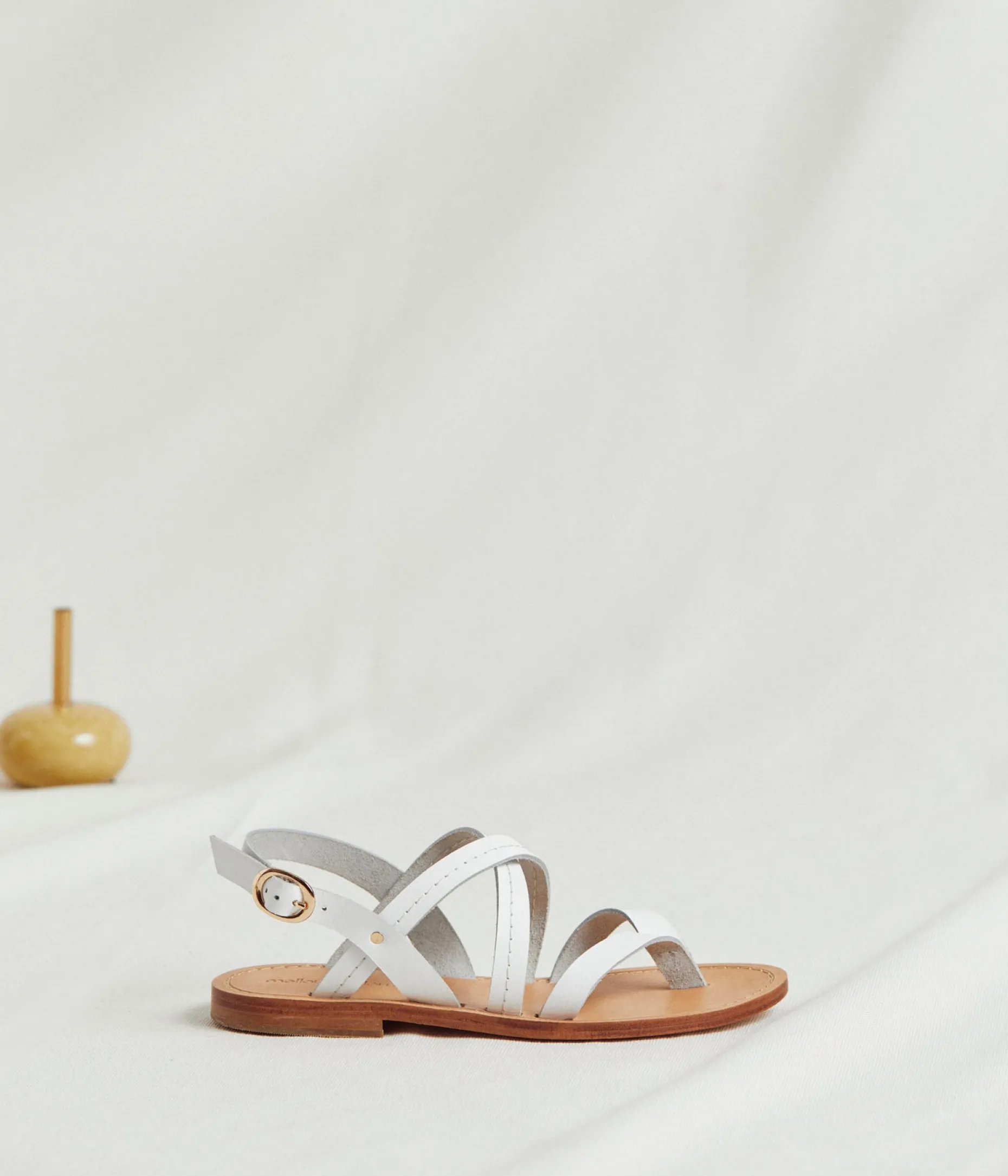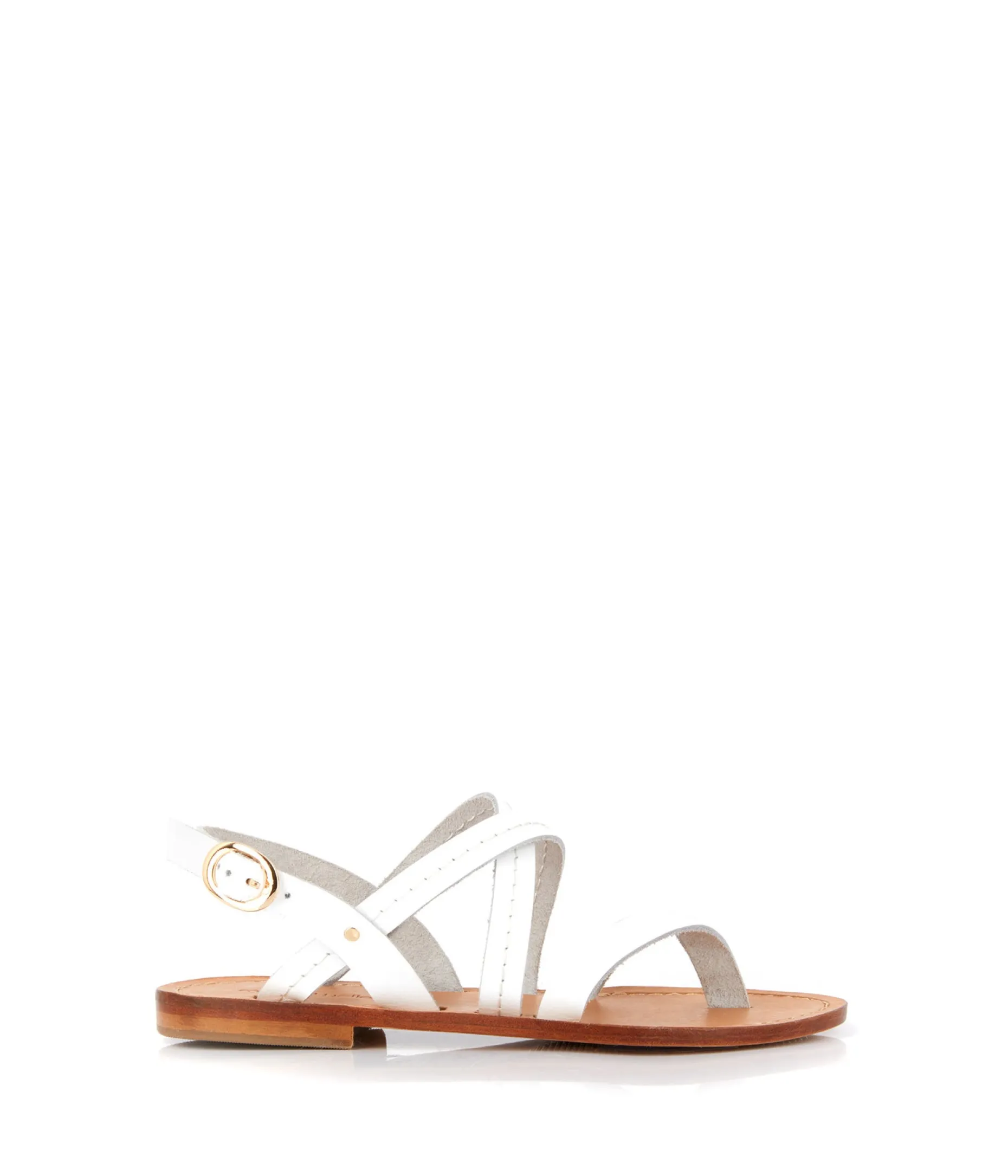 Callie, ça rime avec Californie. Et avec ses lanières de cuir blanc surpiquées, c’est la sandale parfaite pour flâner sous le soleil de la côte ouest, que vous ayez booké un billet pour L.A. ou Quiberon.