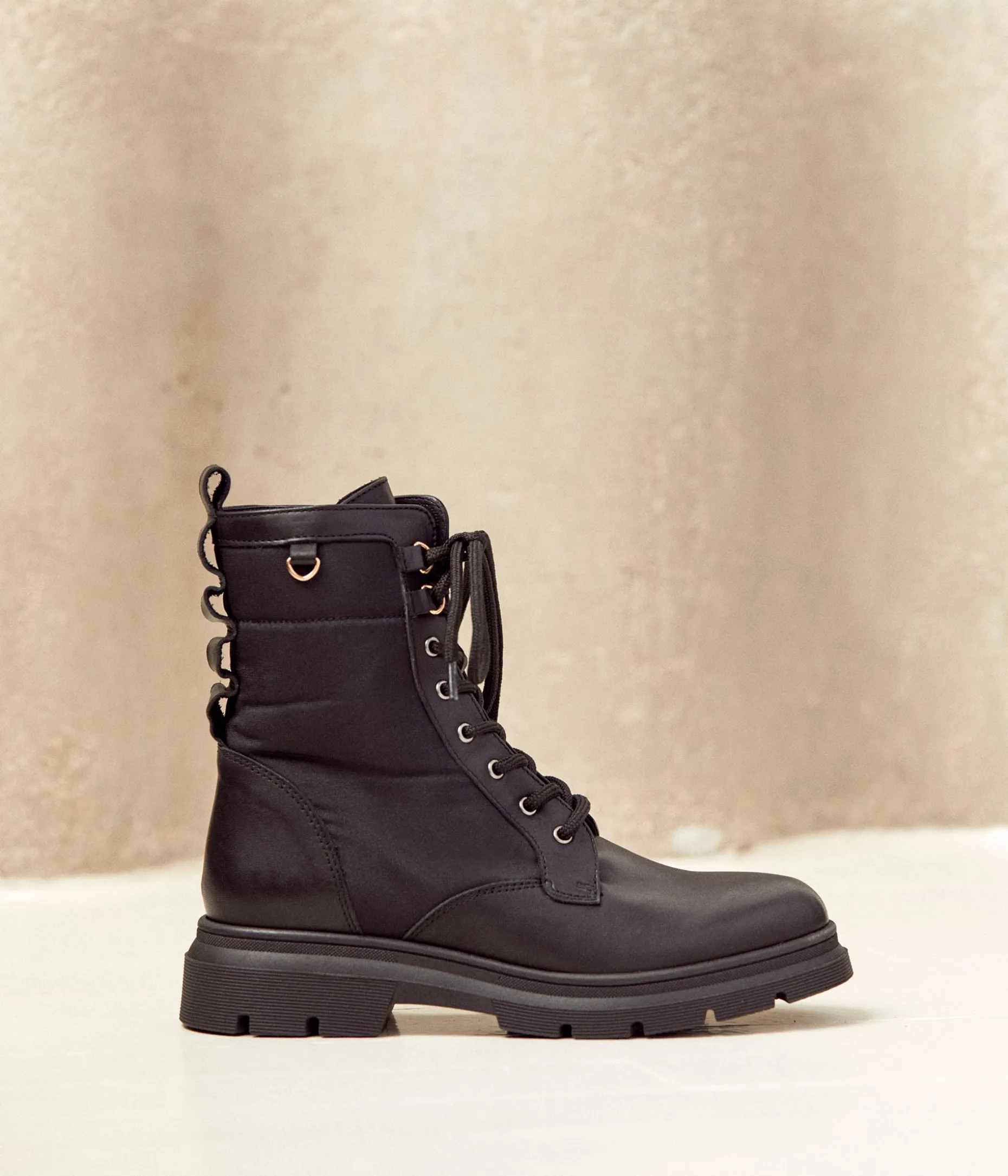 Parce que vous ne brillez pas par votre habileté à faire des choix (vous êtes de celles dont les soirées Netflix & chill tournent au drame), on va vous faciliter la tâche sur le choix de vos prochaines chaussures. Mi-polyester recyclé, mi-cuir, nos bottines Britain noires sont en plus tout confort. Easy peasy.