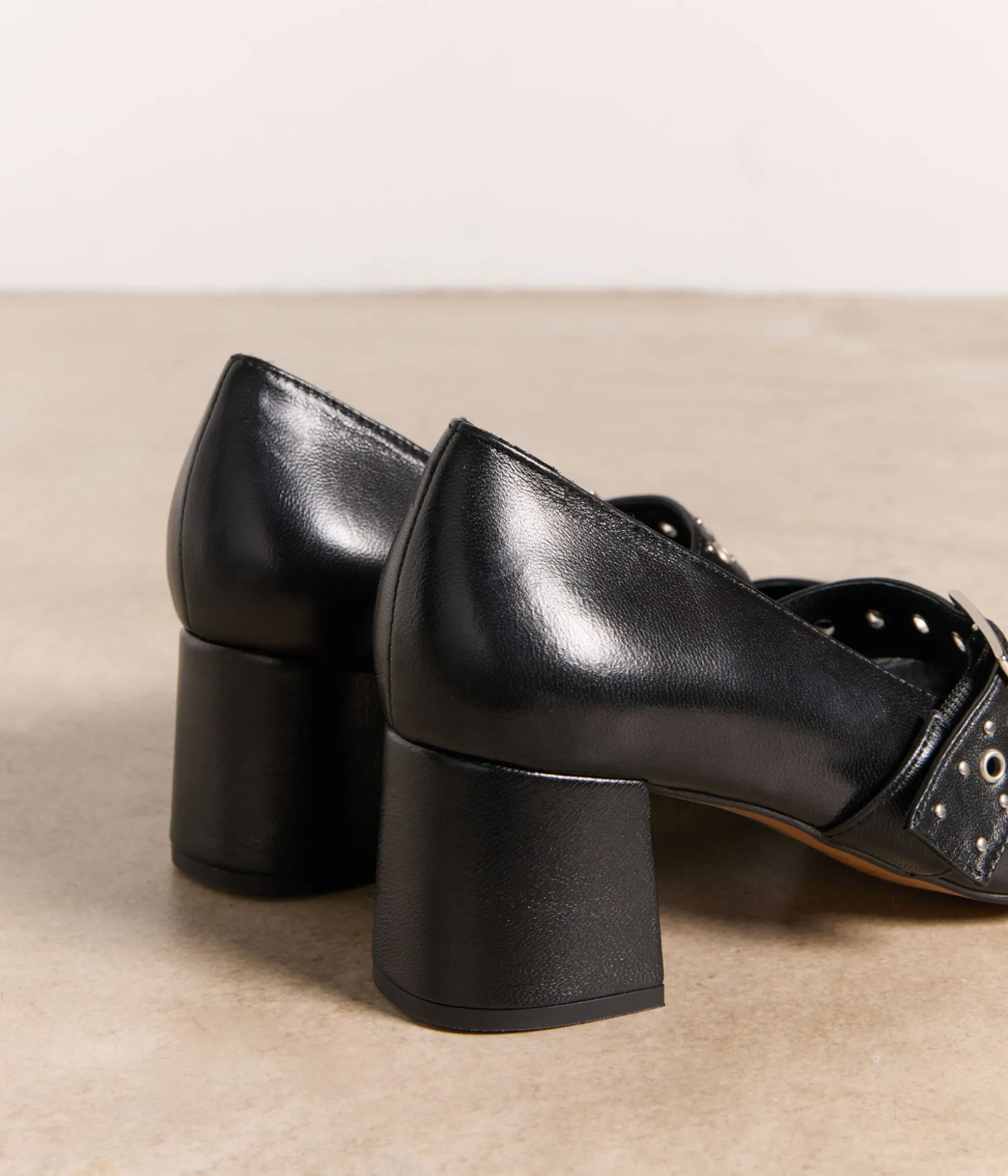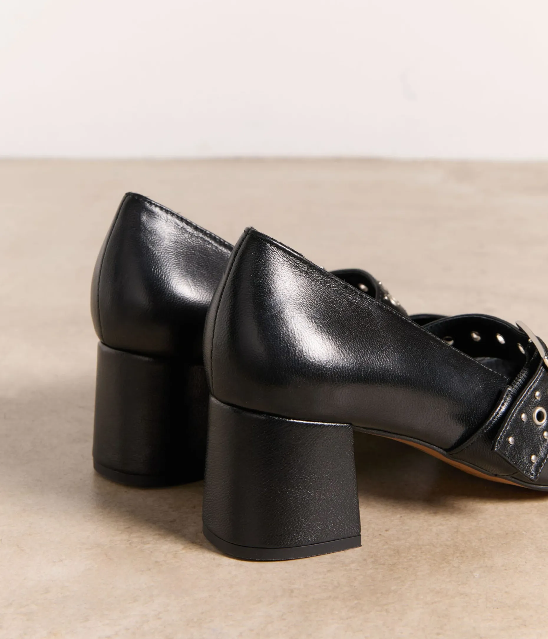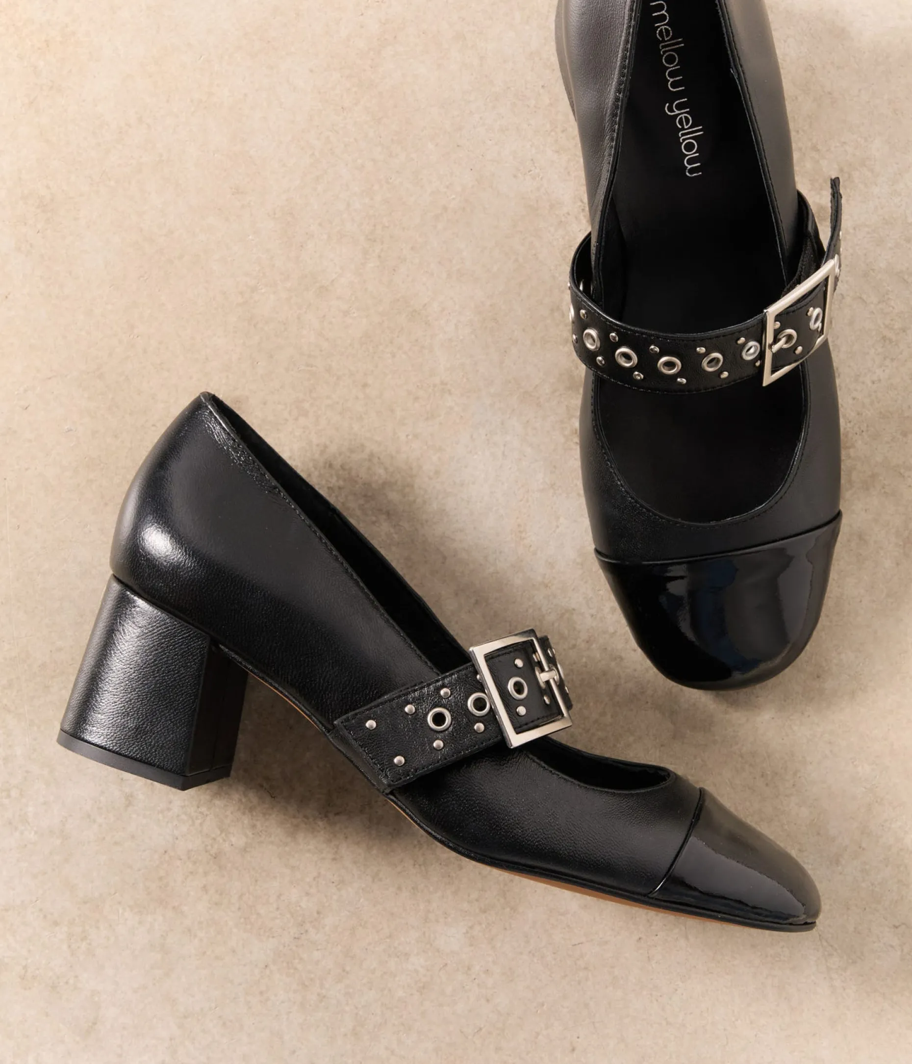 On dit de l’opaline qu’elle est une pierre aux propriétés calmantes, souvent utilisée pour contrer les sauts d’humeur et favoriser la relaxation. Faites l’expérience avec ces escarpins en cuir noir, décorées d’une bride. On vous sent tout de suite plus détendue, non ?
