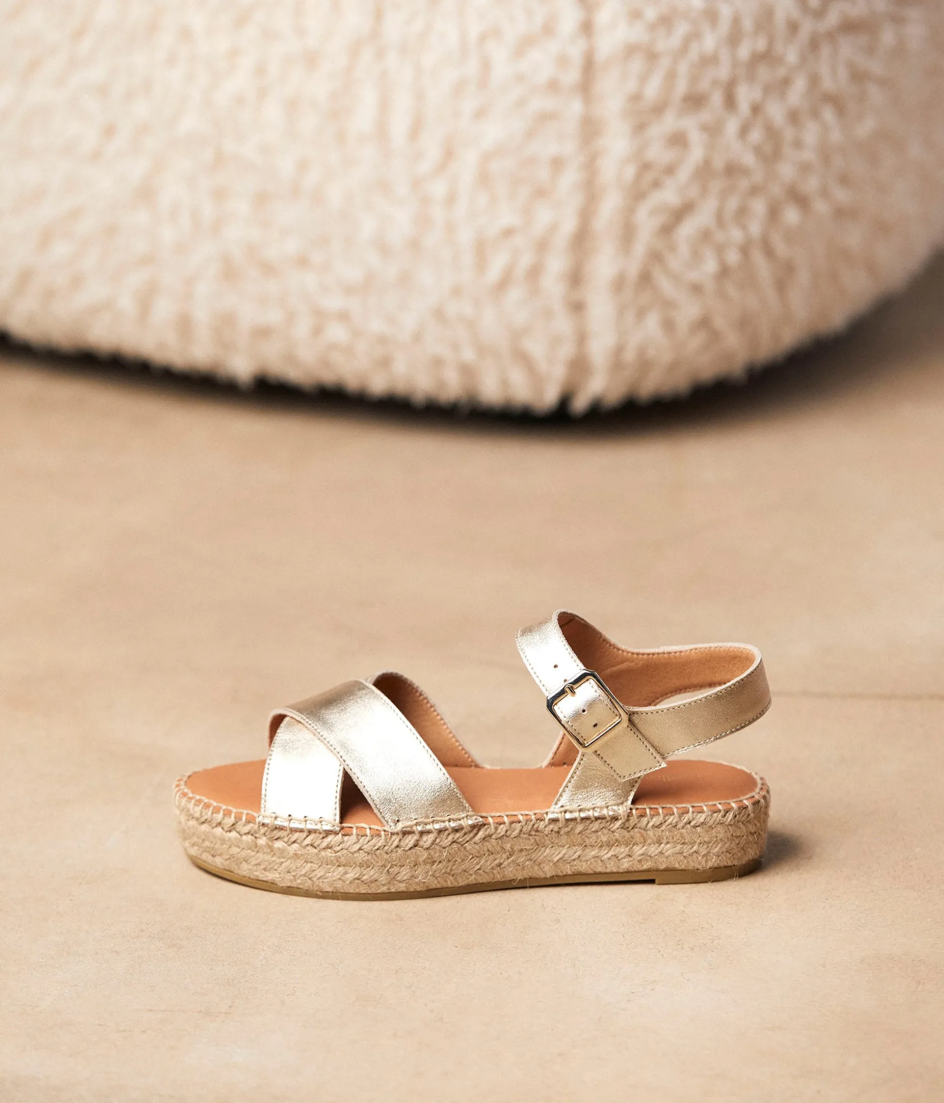 En cuir métallisé, personne ne pourra vous canaliser. Surtout à l’aise comme vous serez dans cette paire d’espadrilles plates avec semelles souples qui répondent au doux nom de Pio. Ici en version or.