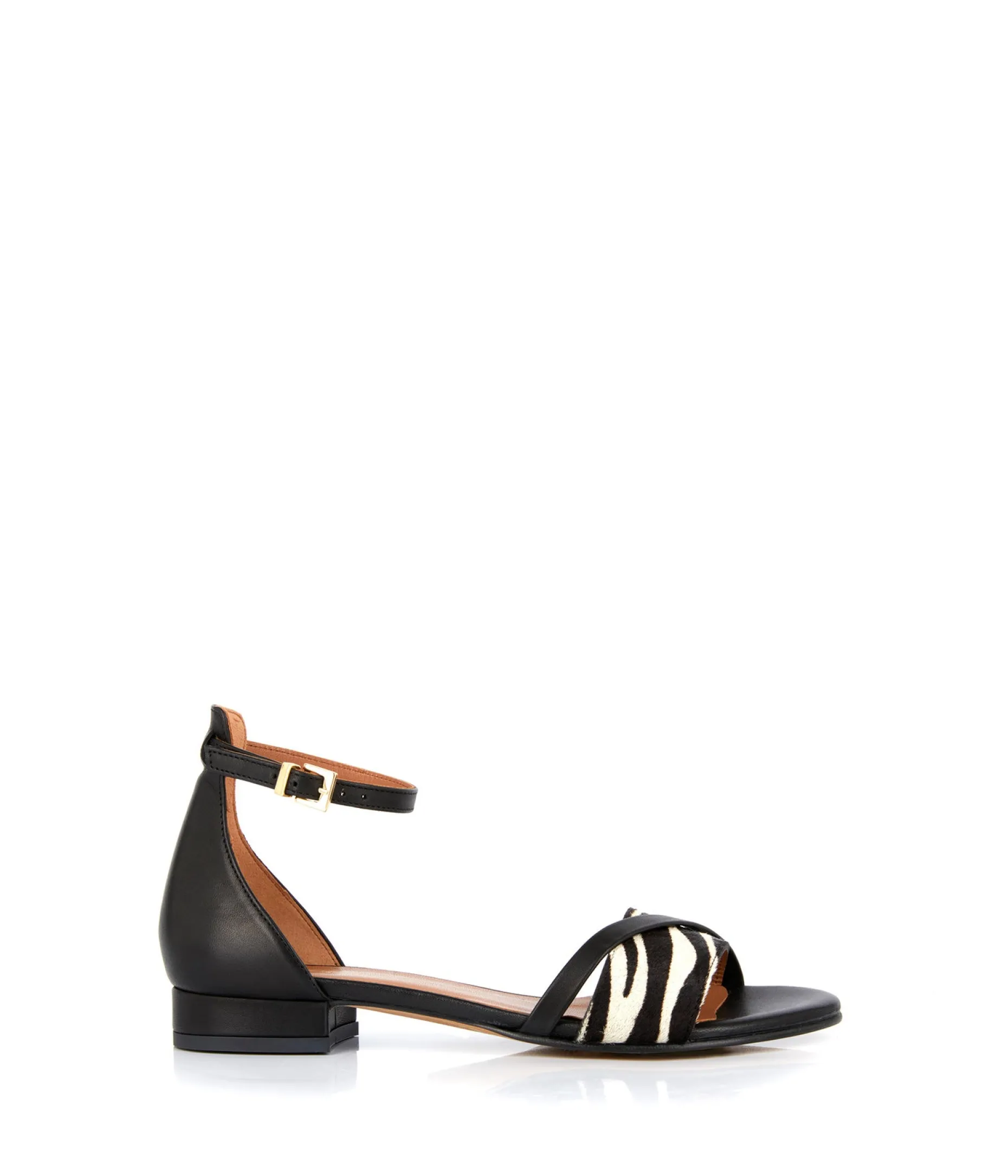Vous voulez miser sur le bon poulain ? Faites tapis sur notre paire de sandales plates Ellyn en cuir lisse et cuir façon poulain à motif zèbre. On ne connait pas les côtes, mais on sait que, chaussée ainsi, vous l’aurez. La côte.